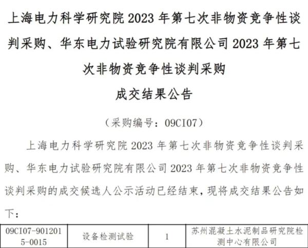 苏混公司成功中标国网上海市电力公司电力科学研究院2023年环形混凝土电杆外委抽检服务项目。