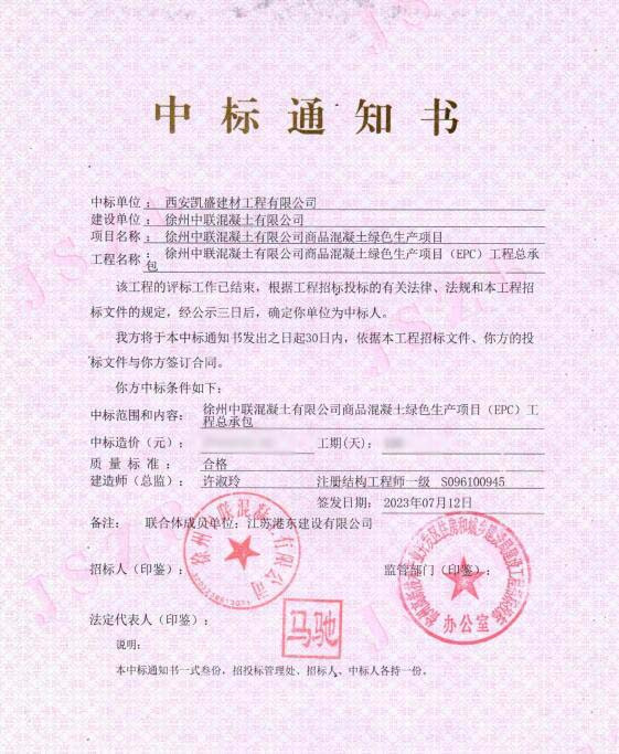 中标徐州中联混凝土有限公司商品混凝土绿色生产线项目