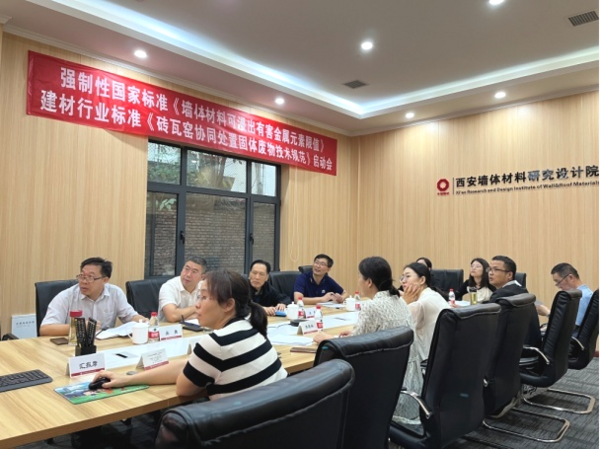 2023年9月20日,由西安墙材院负责主编的强制性国家标准《墙体材料可浸出有害金属元素限值》和建材行业标准《砖瓦窑协同处置固体废弃物技术规范》项目启动会在西安召开。此次会议采取现场会议和视频会议相结合形式进行,全国墙体屋面及道路用建筑材料标准化技术委员会秘书处、陕西生态龙门绿碳产业有限公司、新疆标准化研究院、宁夏中测计量测试检验院有限公司、同济大学等12家单位参加会议,会议由西安墙材院常务副总经理权宗刚主持。
