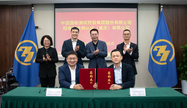 11月10日,国检集团与招商局检测认证(重庆)有限公司战略合作协议签署仪式在渝举行。在国检集团党委书记、董事长朱连滨,招商检测(重庆) 党委书记、总经理李立的共同见证下,国检集团副总经理张永贵与招商检测(重庆)纪委书记郑直代表双方签署合作协议。