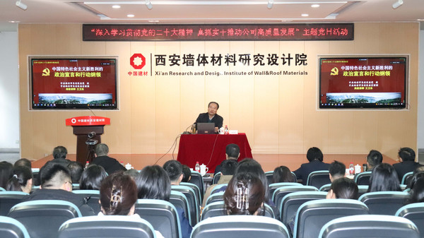 11月17日,西安墙材院党委开展“深入学习贯彻党的二十大精神,真抓实干推动公司高质量发展”主题党日活动,邀请中共西安区委党校高级讲师王卫东副教授讲授主题教育专题党课,西安墙材院党委书记、董事长佟立金主持会议并讲话,西安墙材院全级次领导班子成员,全体党员、发展对象、积极分子、入党申请人员和团员青年100余人参加会议。