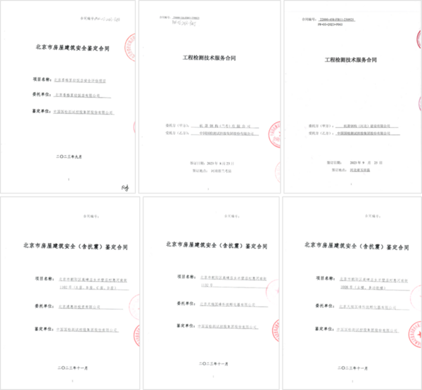 国检集团第三检验认证院成功签订北京香格里拉饭店安全评估项目业务合同,与杭萧钢构(兰考)有限公司和杭萧钢构(河北)有限公司签订工程检测技术服务长期战略合作框架协议,承担北京市朝阳区高碑店乡半壁店村房屋建筑安全(含抗震)鉴定项目。