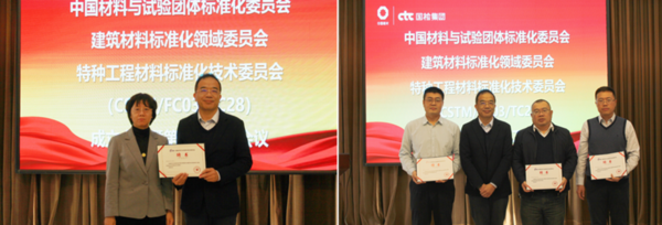 12月7日,中国材料与试验团体标准委员会建筑材料标准化领域委员会特种工程材料标准化技术委员会(CSTM/FC03/TC28)成立大会暨第一次工作会议在北京召开。CSTM建筑材料标准化领域委员会常务副秘书长、国检集团党委副书记、总经理陈璐,国检集团总工程师刘海波出席会议。