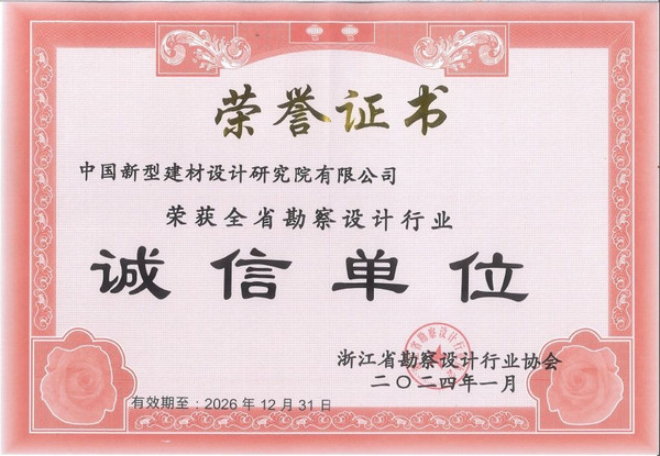 近日,中国新材院荣获浙江省勘察设计行业诚信单位称号。浙江省勘察设计行业“诚信单位”每三年评选一次,旨在表彰全省勘察设计行业中履约能力良好且诚信经营的企业,该荣誉在全省业内具有较大影响力。