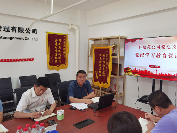 为纵深推进党纪学习教育,筑牢红线意识和底线思维,5月27日,科建苑公司党总支开展党纪学习教育交流会,公司党总支书记、总经理辛志军,党总支纪检委员、副总经理李峥分别讲授党纪学习教育专题党课,开展警示教育。公司党总支委员、各支部书记、中层及以上管理人员参加学习。