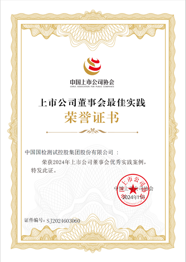近日,中国上市公司协会(以下简称“中上协”)发布了“2024上市公司董事会最佳实践案例”评选结果,国检集团再次荣获“上市公司董事会优秀实践案例”。