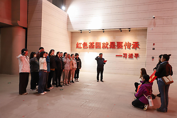 第三日,滕州铁道游击队纪念馆成为学习主阵地。沉浸式车厢剧场与微缩沙盘重现了飞虎队截军列、护首长的传奇壮举;老照片与日军将官刀的对比,诠释了“土枪土炮胜强敌”的精神密码。在《弹起我心爱的土琵琶》旋律中,全体党员庄严重温入党誓词,誓言将红色基因融入血脉,以实干担当践行初心。