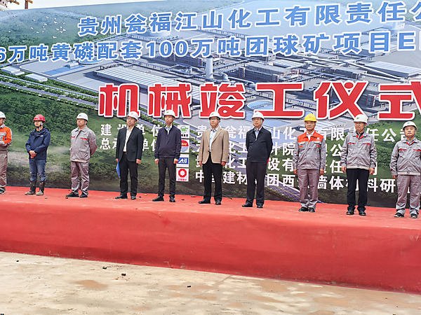 5月29日,西安墙材院总承包的贵州瓮福6.6万吨黄磷配套100万吨团球矿项目举行机械竣工仪式。贵州磷化集团党委书记、董事长何光亮,瓮福集团党委副书记、总经理陈少平,西安墙材院党委书记、总经理权宗刚,贵州建投集团党委副书记、副董事长、总经理毛家荣,云南化工设计院有限公司党委书记龚有明,瓮福江山党委副书记、总经理何润林等出席活动。