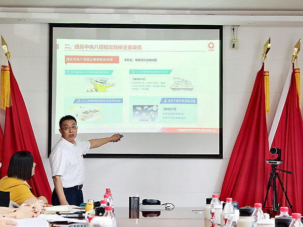 6月28日,中国建材总院副总经理文寨军到西安墙材院讲授专题党课并就“十五五”科技发展规划编制、中央八项规定精神学习教育等工作情况进行调研。西安墙材院党委书记、总经理权宗刚做工作汇报。